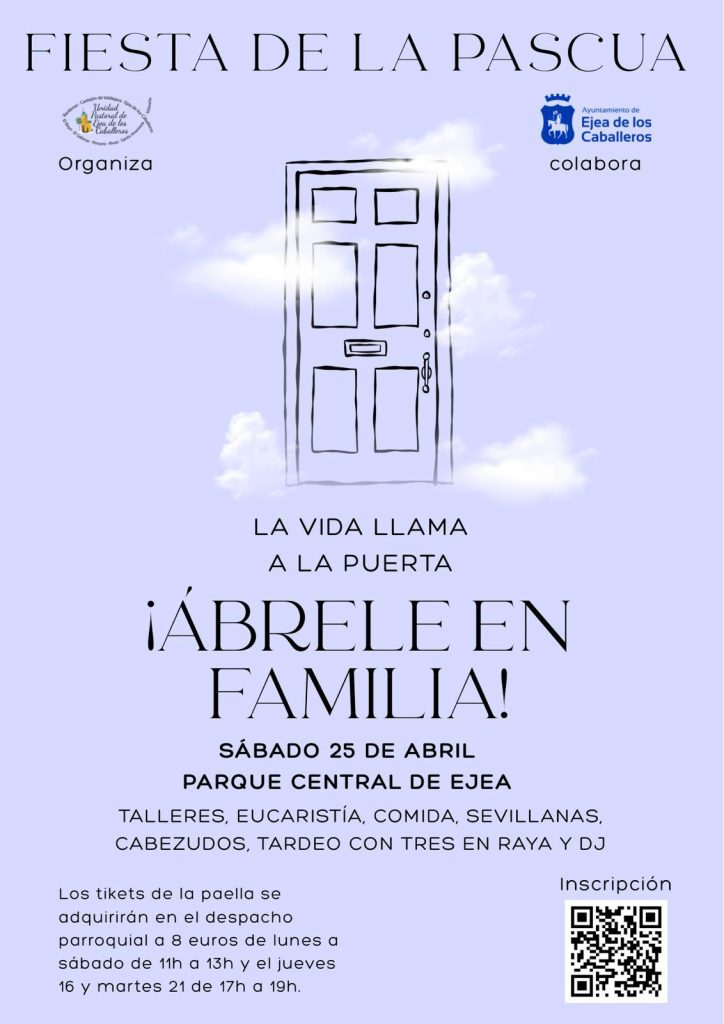 En este sábado del 25 de abril celebramos la gran jornada de convivencia de la unidad pastoral de Ejea, para toda la familia en el parque central. (Si hiciera mal tiempo sería en el casino).