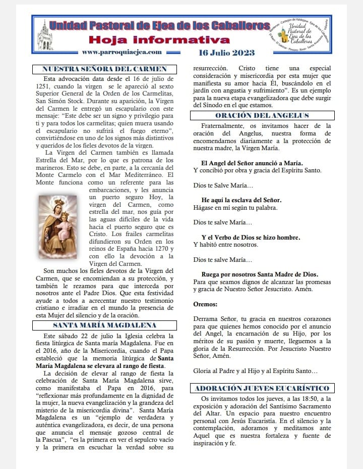 Descargar Hoja Parroquial 14 y 21 de julio de 2024