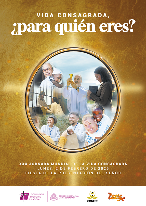 Este día de la fiesta de la “Presentación del Señor en el Templo”, celebramos la Jornada Mundial de la Vida Consagrada, con el lema: ‘¿Para quién eres?’, en sintonía con el Congreso de Vocaciones que se celebró hace casi un año, del 7 al 9 de febrero de 2025. El aniversario de este encuentro de «comunión fraterna entre todas las vocaciones» motiva a la vida consagrada para seguir «construyendo la cultura vocacional» y tomar conciencia de que cada persona es «una vocación para la misión». El mensaje de los obispos dice: “«Vida consagrada, ¿para quién eres?» se convierte así en algo más que un lema: es un eco de la Palabra viva que, vivida en clave de consagración, amplía nuestros horizontes de comunión, participación y misión. Aquellos en los que podemos enriquecer a muchos —y a nosotros mismos—, poniendo en juego nuestra vida de dedicación entera a Dios y a los hermanos a través de la vivencia plena de la castidad, la obediencia y la pobreza, verdadero don profético de las personas consagradas para toda la Iglesia y para los hombres y las mujeres de buena voluntad”